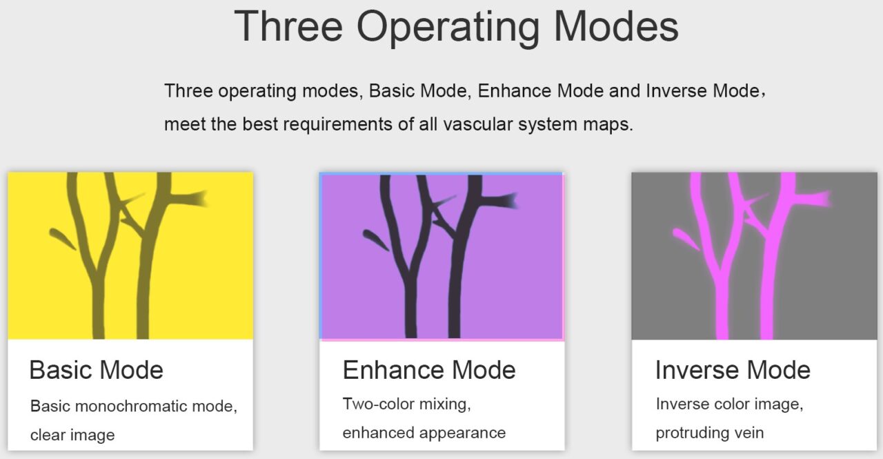 Zařízení promítá obraz žil na povrch kůže v reálném čase. Díky tomu lze snadno rozpoznat polohu, průběh a dostupnost žil bez nutnosti opakovaných pokusů o zavedení jehly.